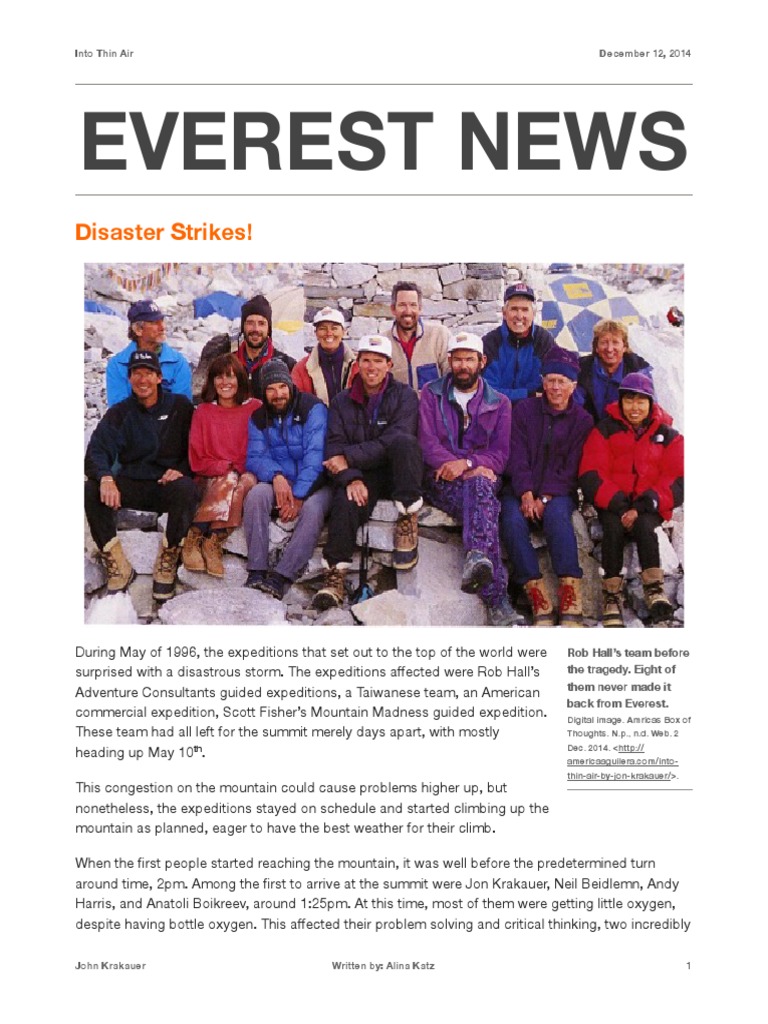 Several books and films have come out of the everest disaster, including bestseller into thin air by jon krakauer (a journalist.